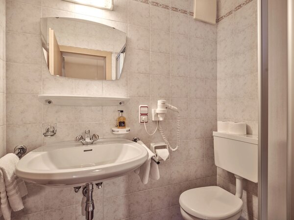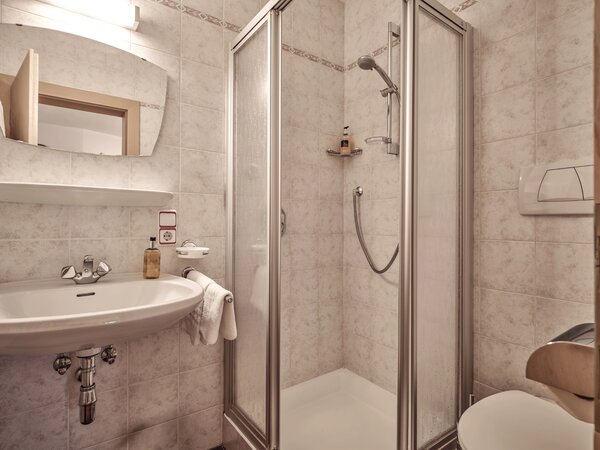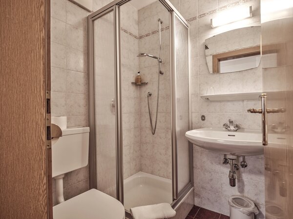 Badezimmer: mit WC, Dusche, Föhn und Handtüchern