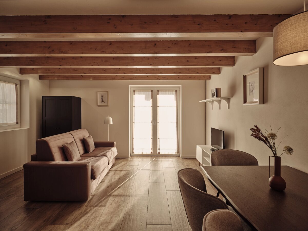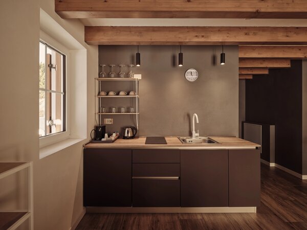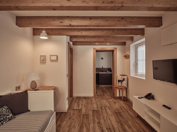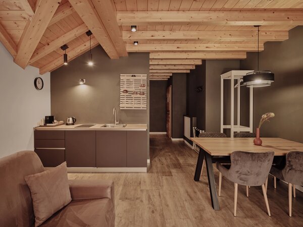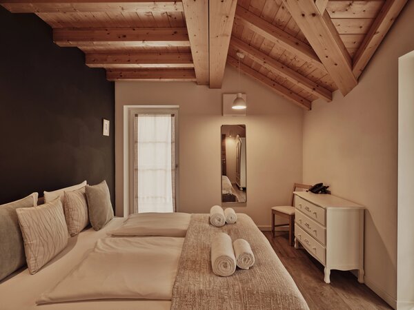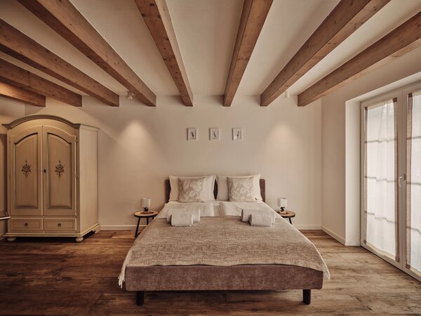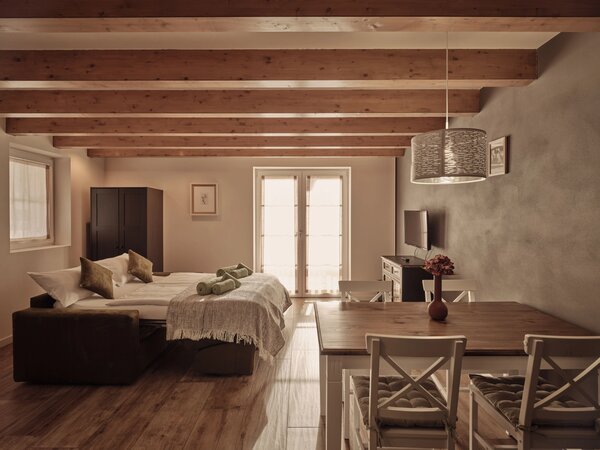 Großzügige, stilvoll eingerichtete Apartments mit Panoramablick auf die Dolomiten und das Villnösstal. Jede Suite verfügt über Schlafzimmer, Badezimmer, Wohnbereich und eine voll ausgestattete Küche. Große Balkone oder Terrassen mit Blick auf die Geislergruppe. Hochwertige Ausstattung mit Doppelbett, Schlafsofa, Küchenzeile, Essbereich, TV, WLAN, Safe sowie modernem Bad. Ideal für Gäste, die Komfort, Design und Natur schätzen.